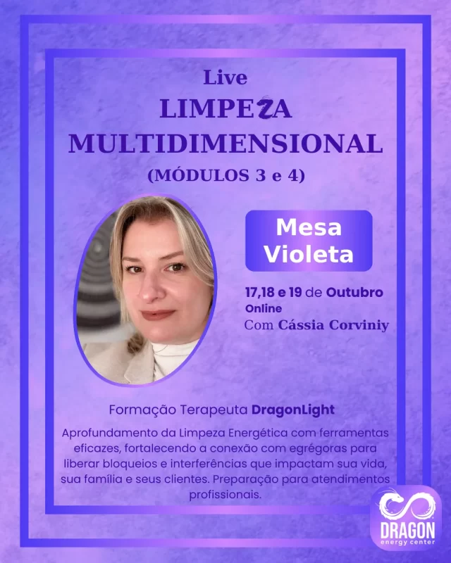 17, 18 e 19/10: 💜 Curso: Mesa Violeta. Com Cássia Corviniy (online).